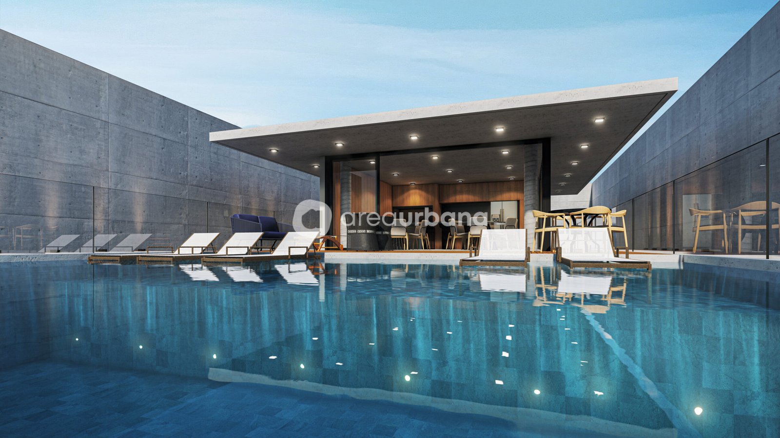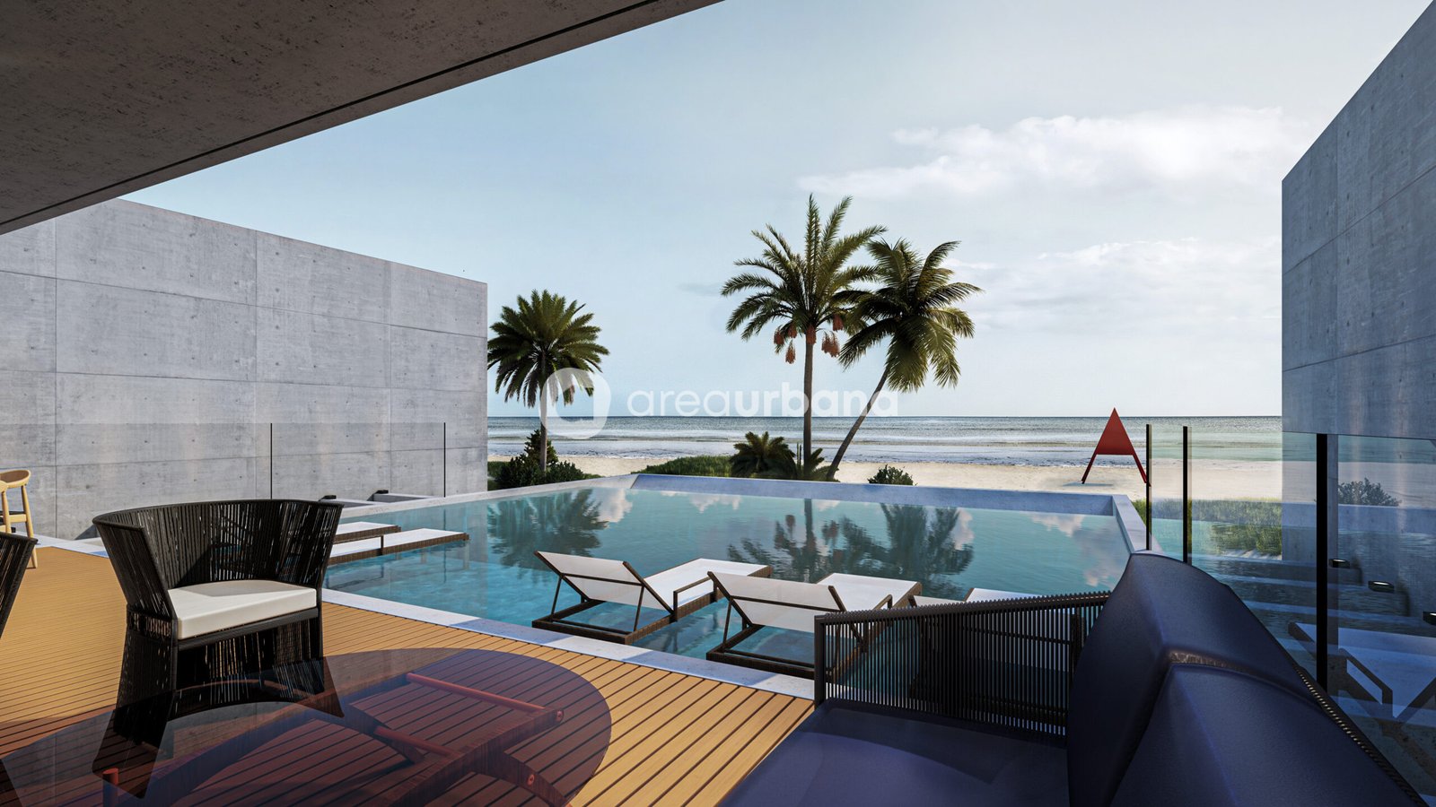 • Piscina com deck molhado + pool bar frente à praia